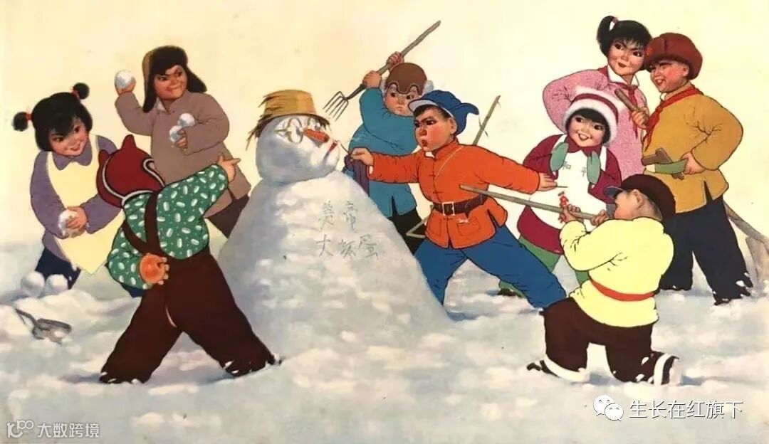 9、1967年出版的《打坏蛋》年画,作者是任继学,在冬天的雪地里,一群孩子们堆起了雪人,他们将雪人装扮成了坏蛋,上面写着美帝大坏蛋的字样,纷纷拿着叉子和玩具枪和雪球打着敌人。