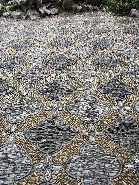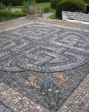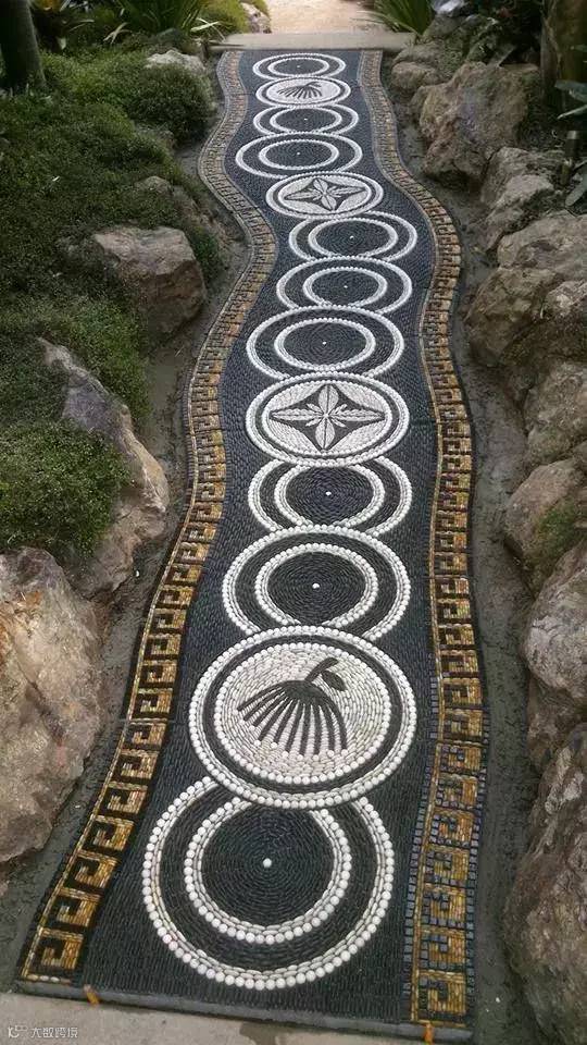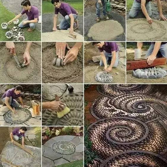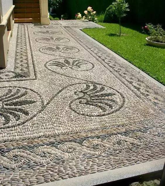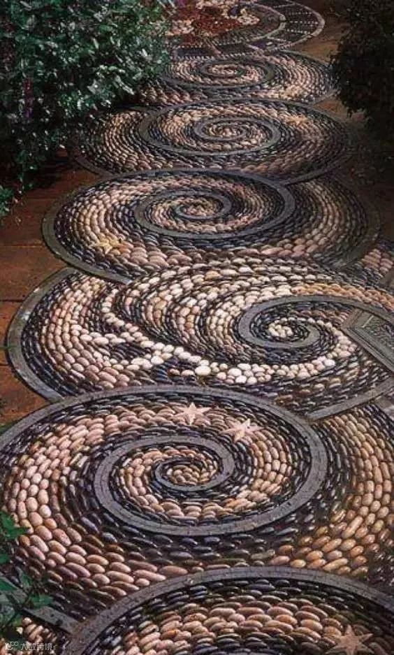 这么多石子的图案一个比一个漂亮,石子路边有的是,小编就差一个院子了。当然即使你没有大空间,在细节位置做一个小面积的石子拼贴也很不错哦。