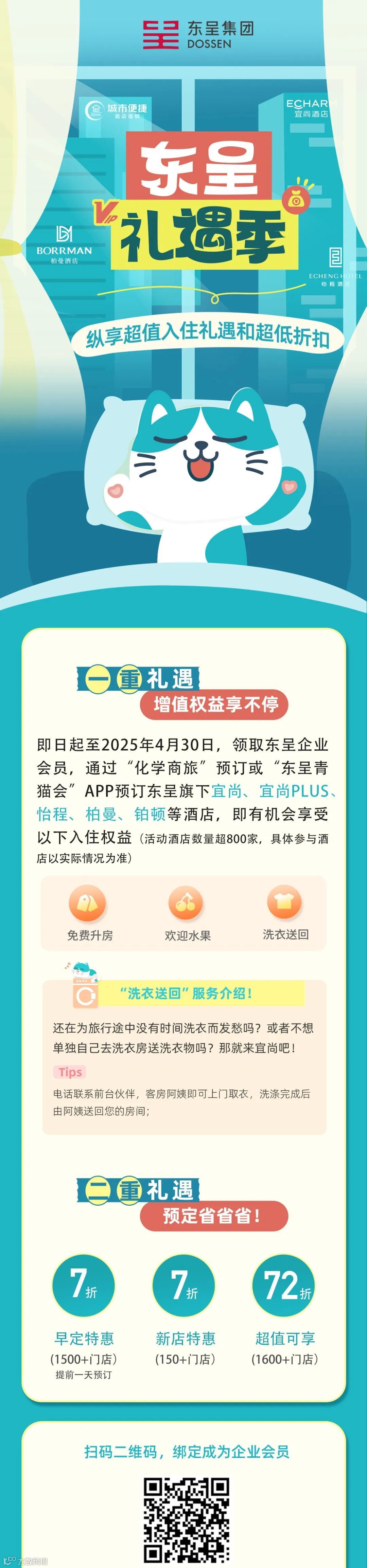 化学商旅平台已经引入协议酒店资源(亚朵、华住会、东呈、首旅如家、百达屋、锦江等酒店集团),企业协议折扣整体优于个人铂金会员,且较其它第三方平台有显著价格优势,同享免押金、双早、限时免费取消、延迟退房至15:00、免费升级房型、免费停车场、自助洗衣房、健身房等服务。通过化学商旅平台预订酒店可享免垫资、个人免开票、免押金、差旅报销一键引用、7×24小时服务保障及协议酒店福利等。