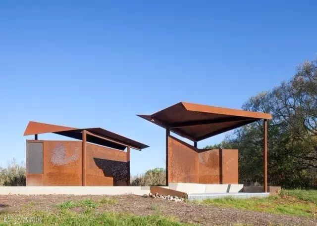 新型的耐候钢与自然的结合,营造出雕塑式的艺术作品,不仅艺术感十足,也谙和了环保和可持续的当代设计理念。