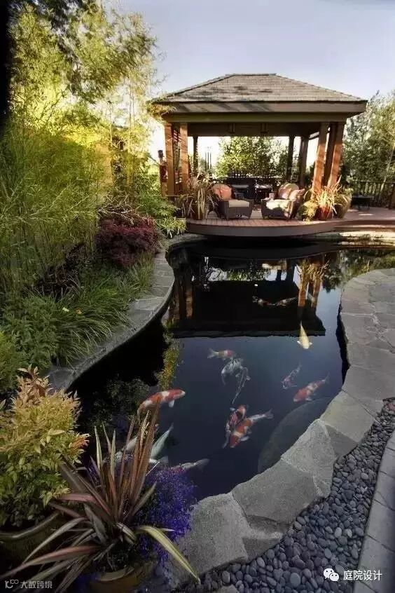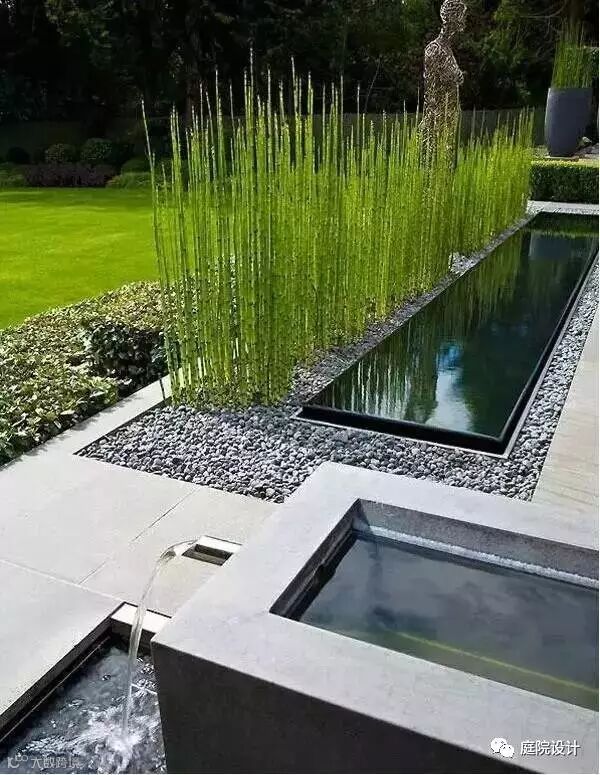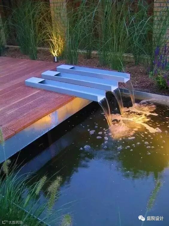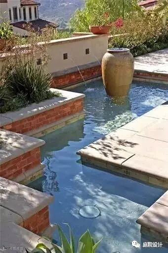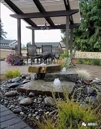 水因为形式多样、轻盈灵动等特性,多被运用于景观设计上,如果在庭院里建造一两处水景,将会使你的院子整个活了起来。