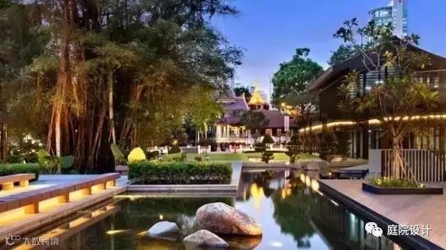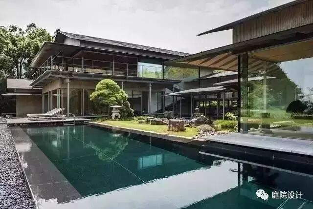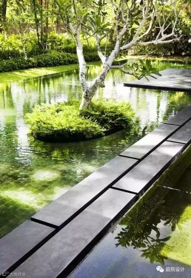 幽静的庭院和水景区形成稀疏与密集、