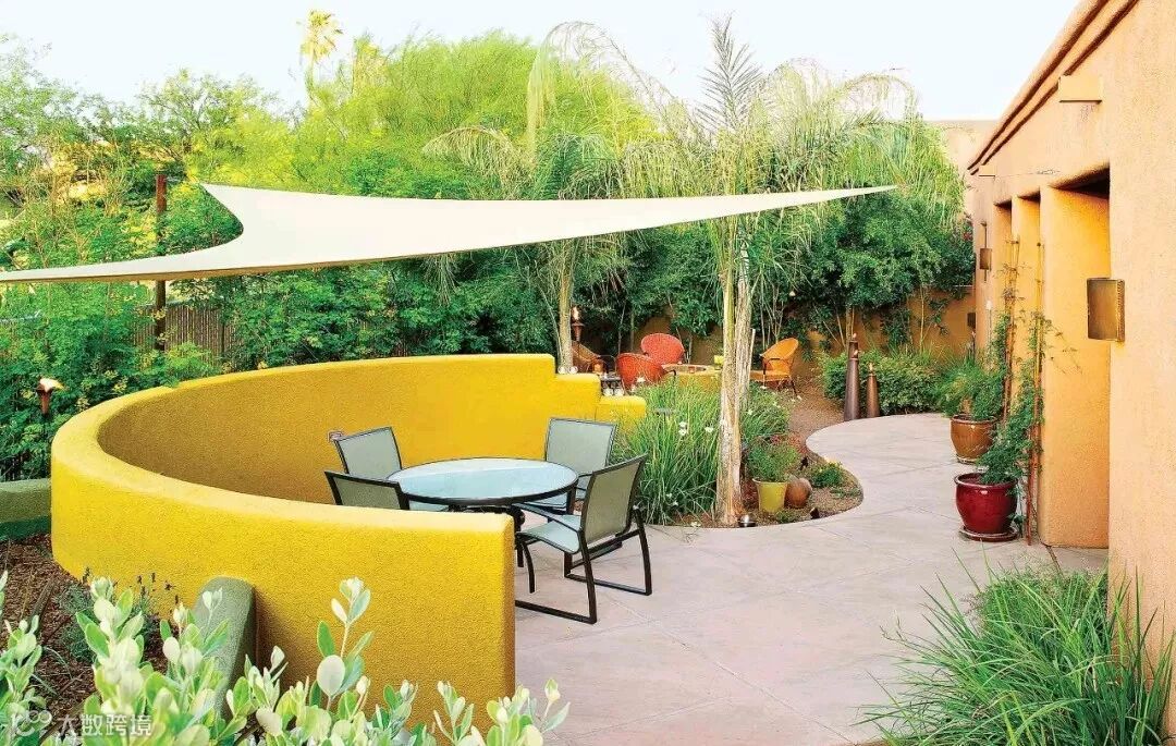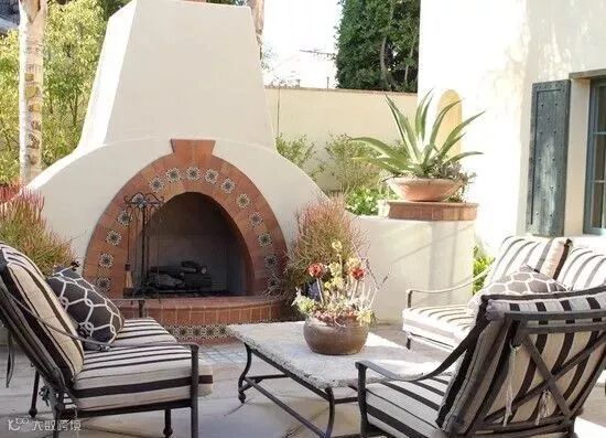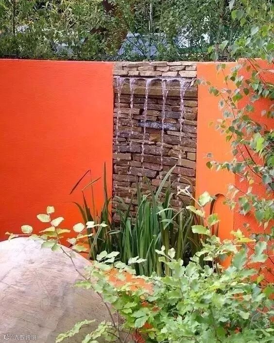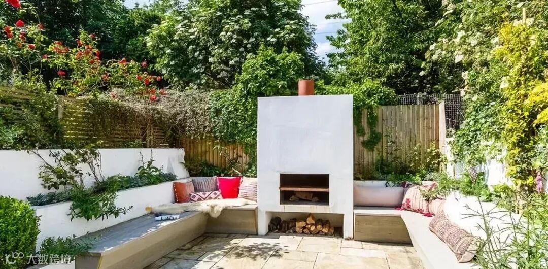 90-120cm左右的矮墙通常被设计在休闲区附近,提供一定的围合感,使人在心理上觉得安全踏实。形式上可以仿欧式壁炉,也可以干脆贴合花坛做成高低错落的样式。当然,你也可以使用大胆的色彩,成为整个花园里一道最亮丽耀眼的风景。