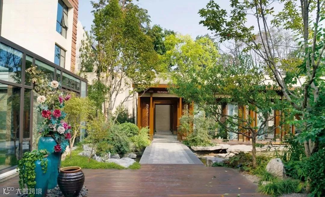 中国传统庭院设计中讲究“院落三进”布局,打造三重入门礼序:一重园门、二重院门、三重宅门。