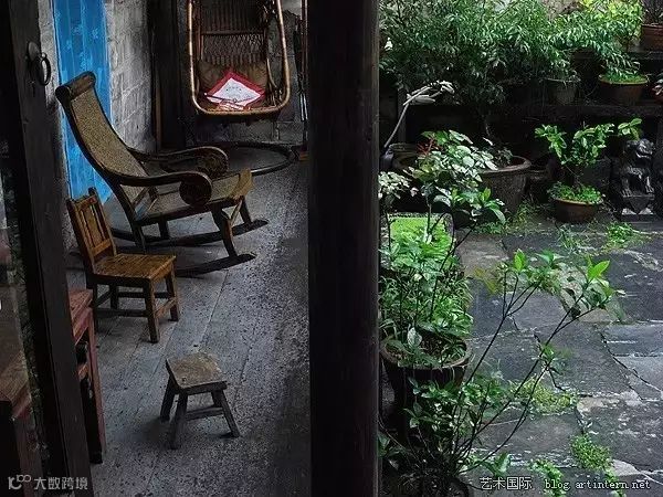 只有放在中式的院子里
