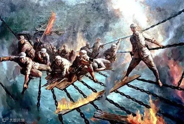红军战士踩着铁索