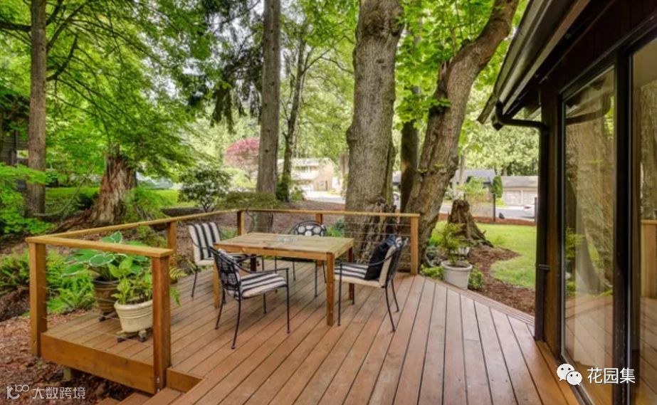 当然,甲板上的隐私性也不能忽视,如果你不想让邻居看到你的生活,那么添加乔木、凉棚、格子或其他东西,能有效创造隐私可能。