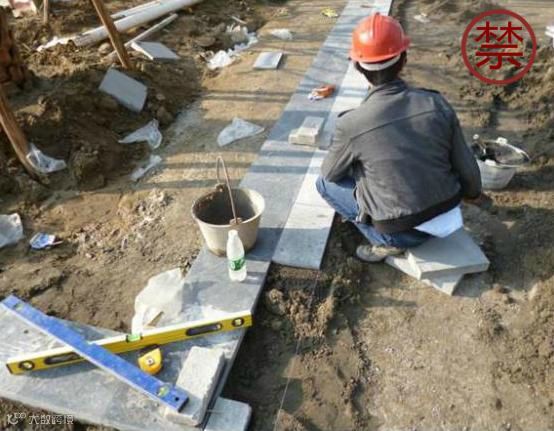 2、根据石材水平线确定结合层砂浆厚度,砂浆的厚度一般为3cm-5cm左右。铺砌时结合层水泥砂浆一次不宜摊铺太多,随摊随铺。