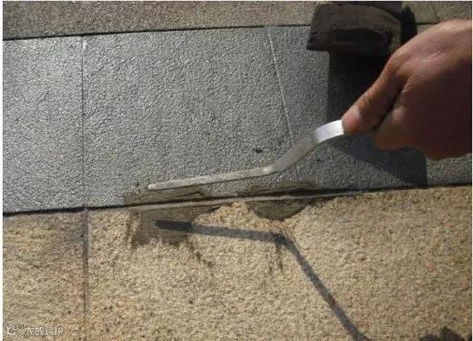 1、密封铺装缝隙不应超过2mm,铺装施工过程中需用工具(如铁丝、金属片等)辅助控制缝宽,铺贴前需对石材毛边进行扫边处理,以减少尺寸误差;