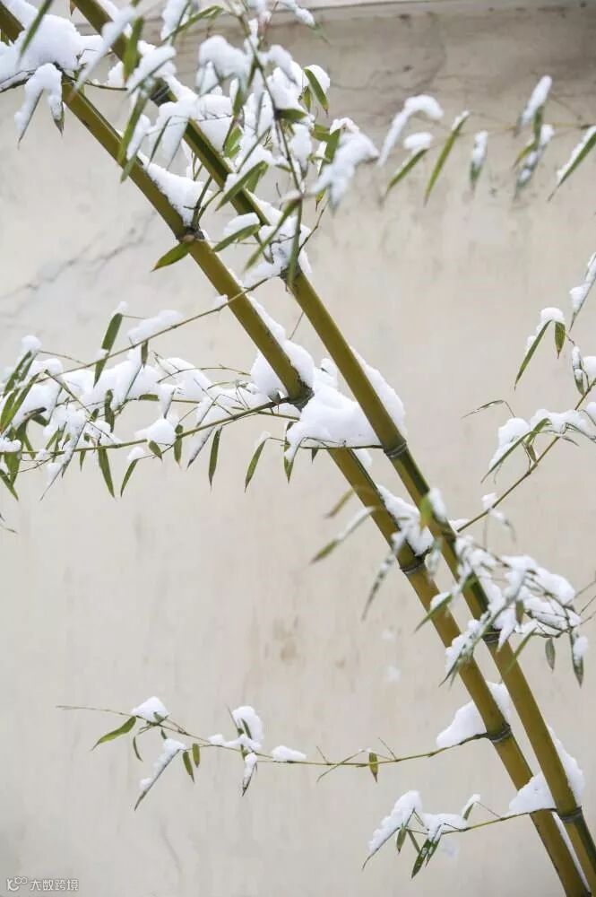 看冬天大雪,雪压枝头,