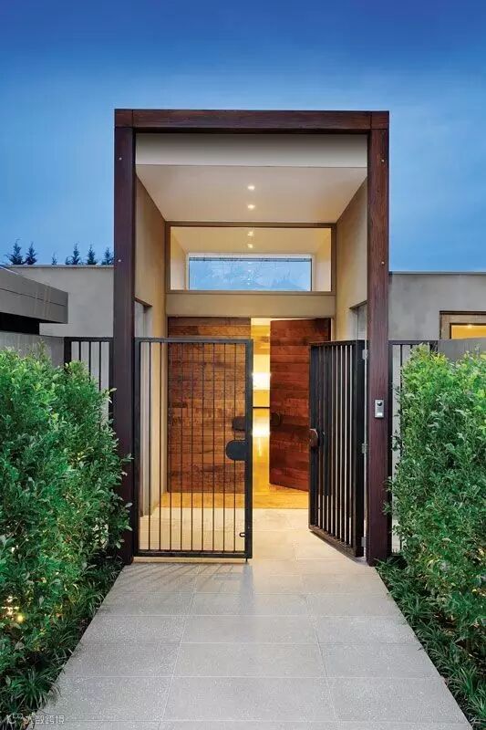 室外门厅应该表现出“好客”的意蕴,营造一种愉快的氛围。还应表现出亲切感,像室内居家一样,使用盆栽树、雕塑等来布置这个空间。