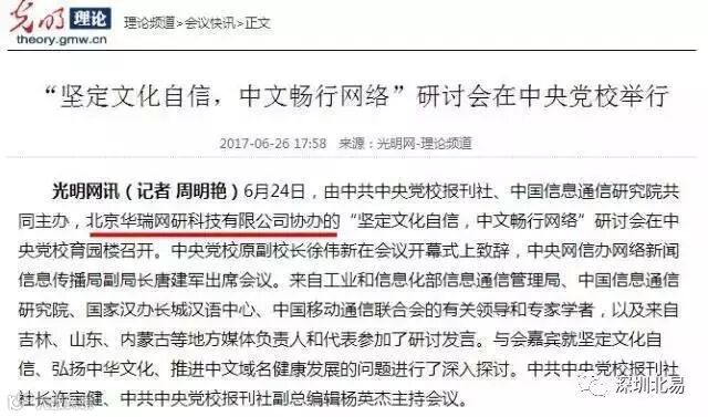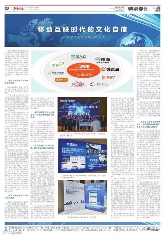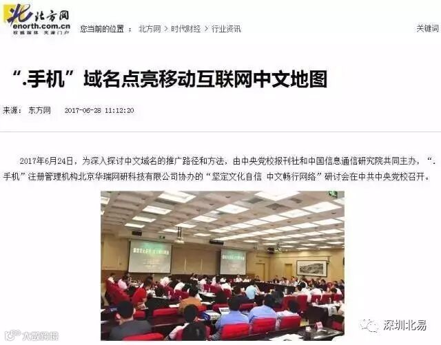 6月24日,由中共中央党校报刊社、中国信息通信研究院共同主办,北京华瑞网研科技有限公司协办的“坚定文化自信,中文畅行网络”研讨会在中央党校召开,吸引了人民日报、新华社、光明日报、人民邮电报、新京报、人民网、新华网、光明网、央视网、中国青年网、中国网、中国经济网等国内主流媒体全程参与,“.手机”域名作为中华文化在移动互联网上的有效载体,不仅得到与会领导与嘉宾的高度评价和认可,也受到媒体的持续关注和重点报道。