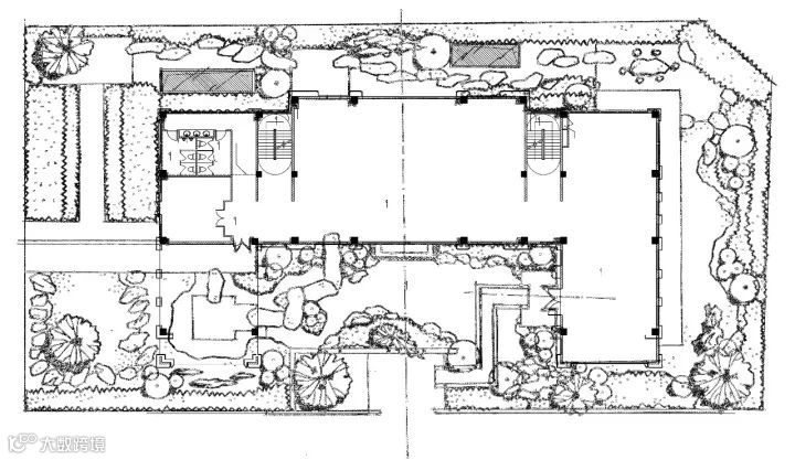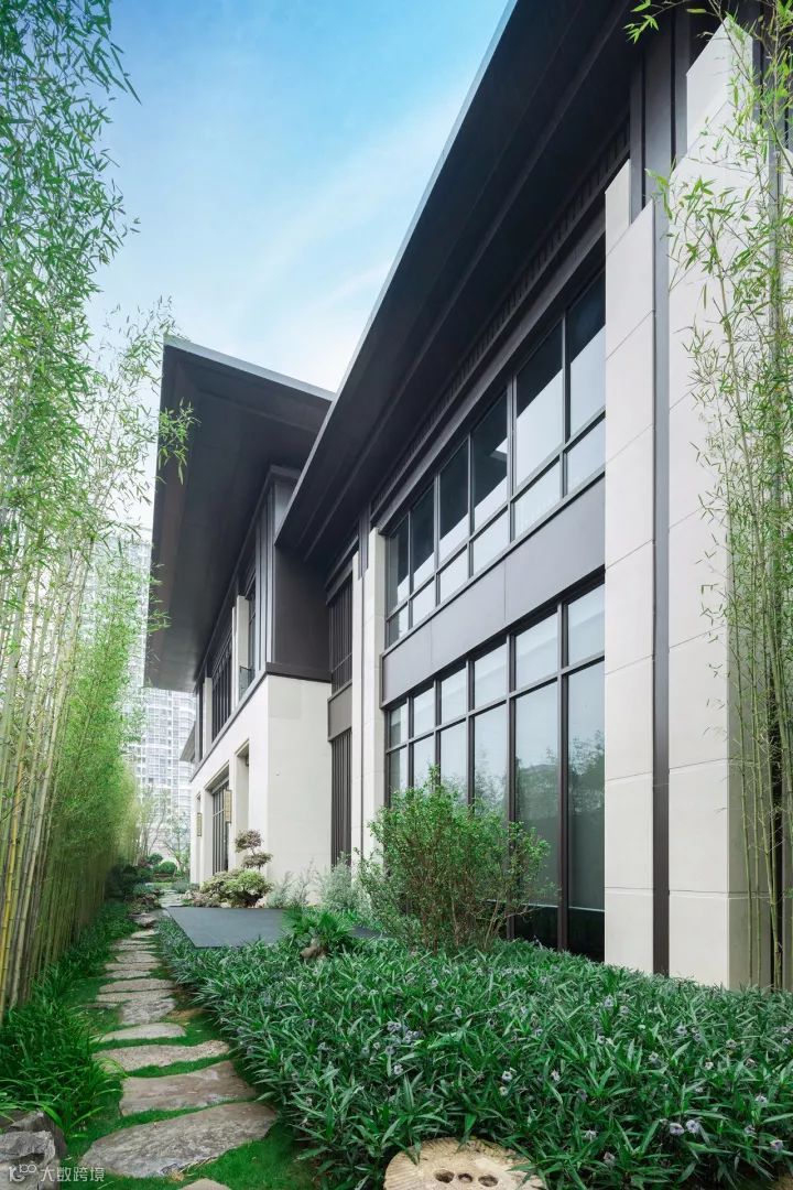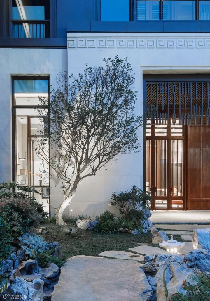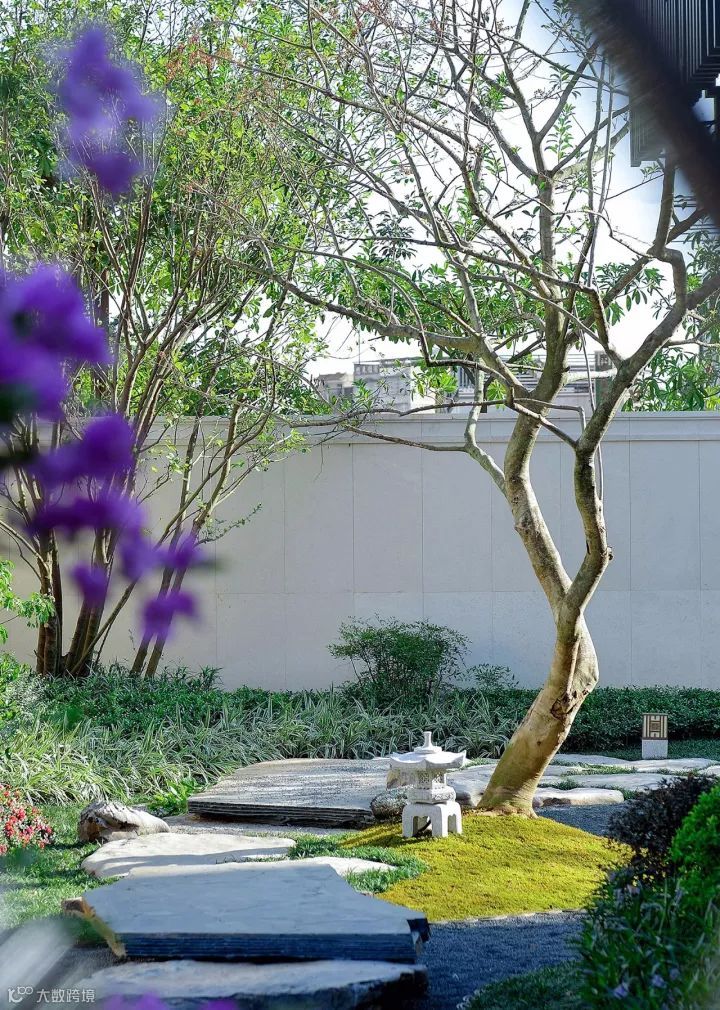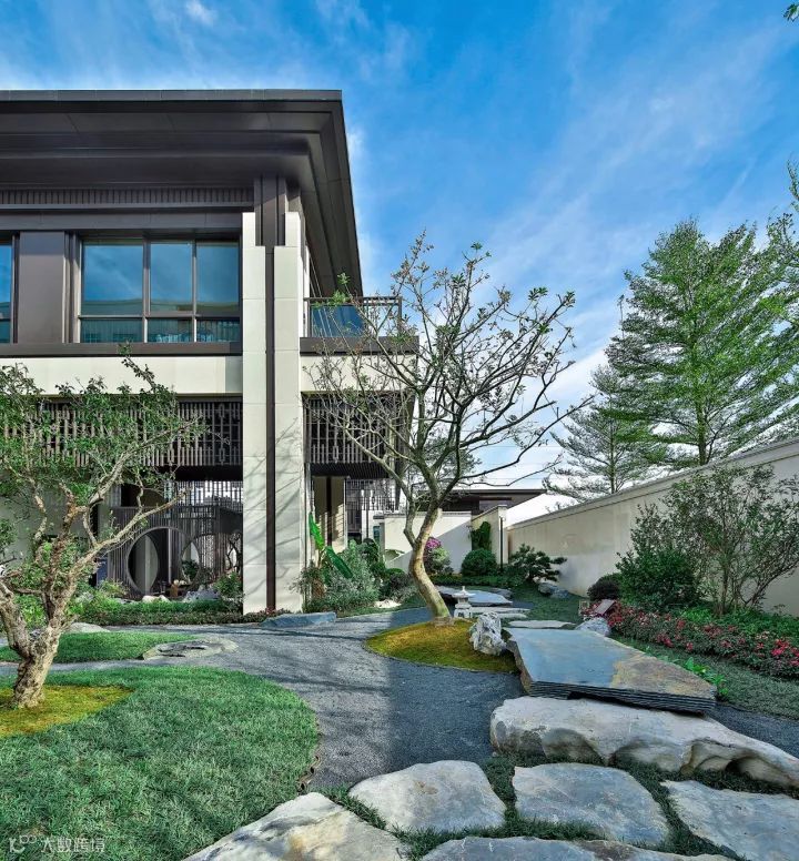 中国园林景观植物设计理念必须具备“礼”的精神和“乐”的精神才算完美,礼”的特点就是“有秩序”,恰如空间入口处,严整方正的对称布局,颇有传统意趣的石狮子分列两侧,青石台阶拾级而上,尊贵感和礼序感兼备,独栋门第续写东方礼仪之美 。