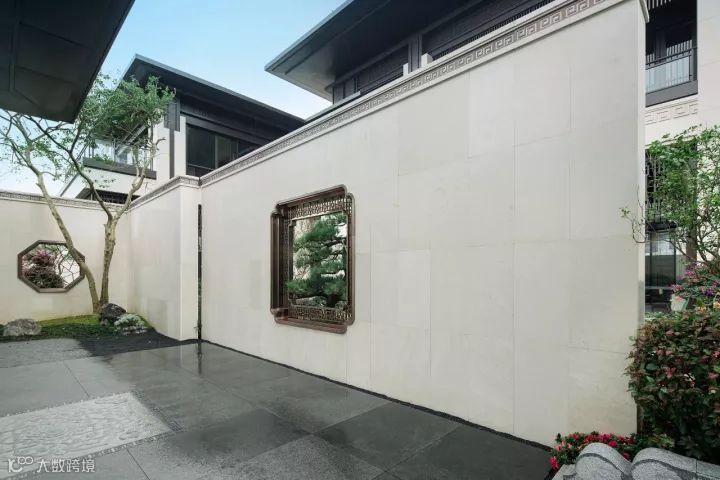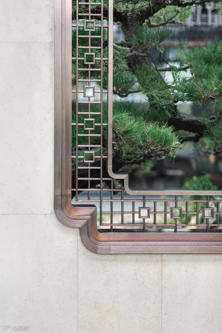 进入宅门,迎面看到的是叠砌考究的树苑影壁,也称为照壁,将美景收于其后,神秘幽微,起到欲扬先抑的效果。一株迎客松透过壁上的小窗迎接来宾,一幅简灵生动的框景图便应运而生,让意的优雅和境的深远开篇定调。