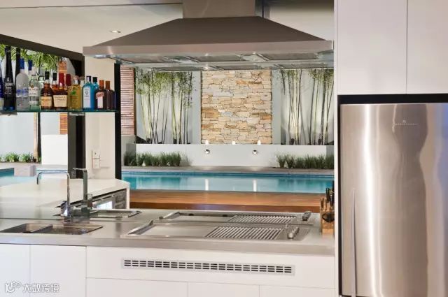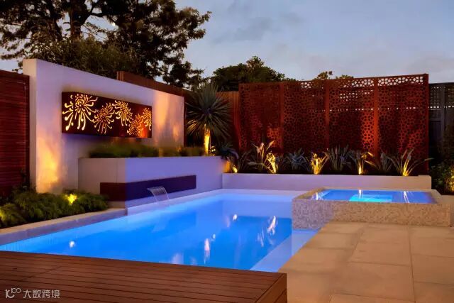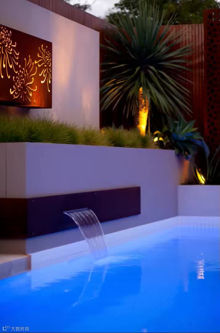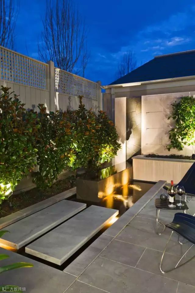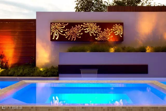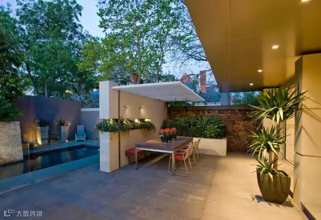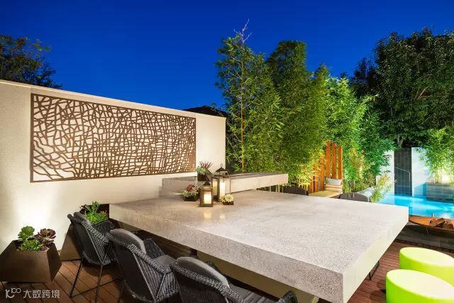 这个庭院足以让室内的工作向室外拓展,设计中的语言元素很简单和特色,以植物元素贯穿的景墙壁挂和廊架,功能空间包含了室外厨房,室外餐桌,还有一些生动的水景,配合灯光的设计,可以想象一下晚餐在这样一个温馨的环境中是多么美好。