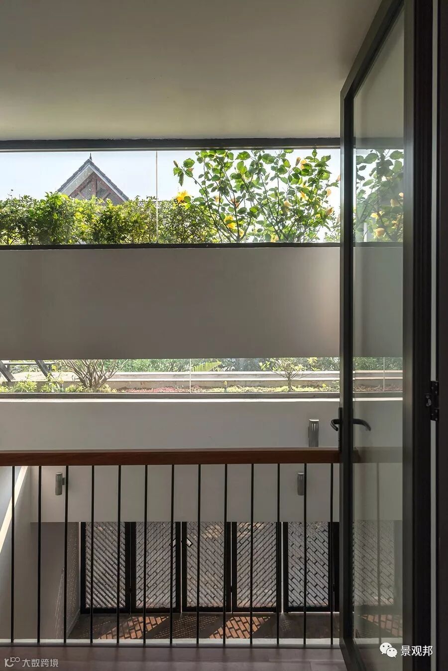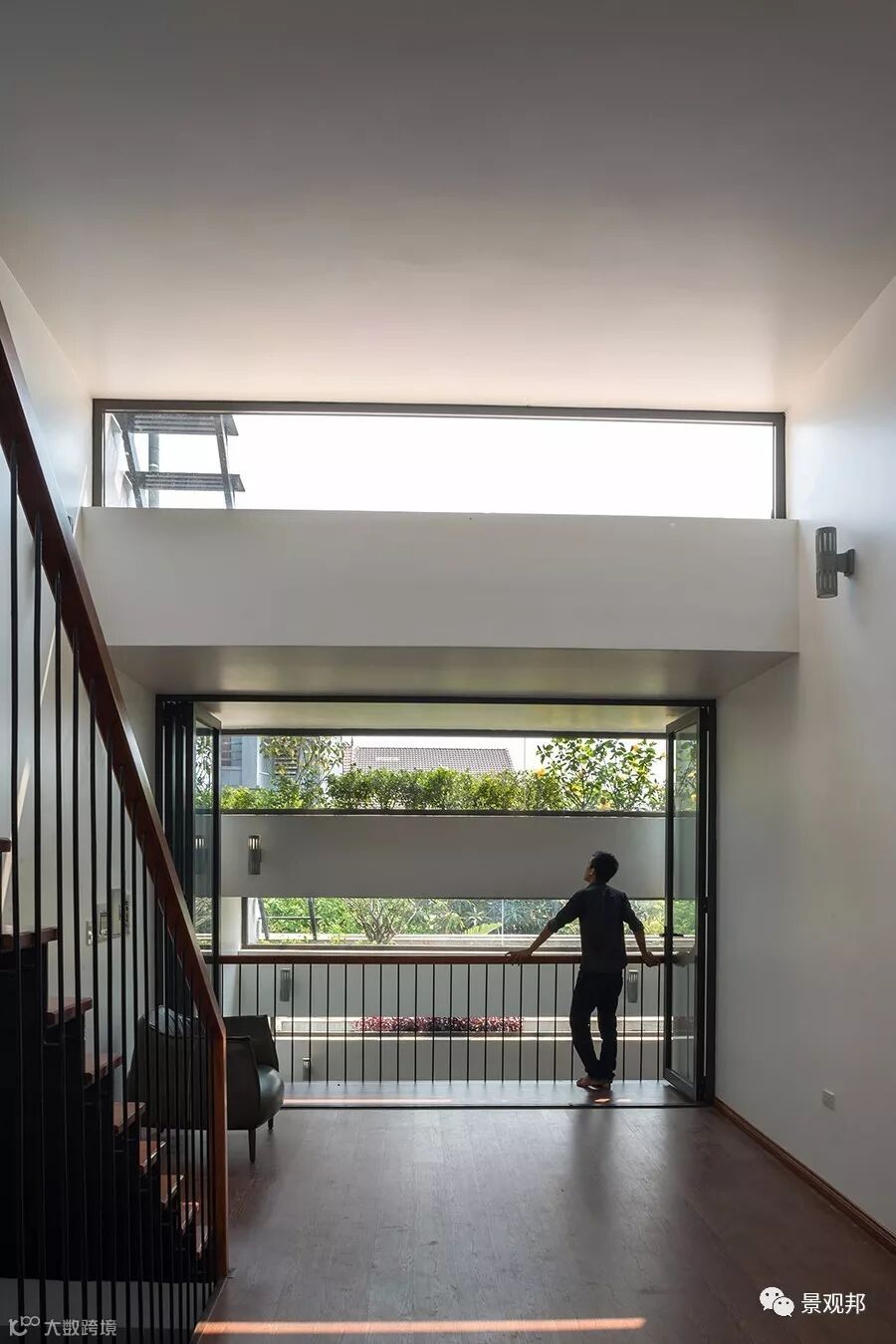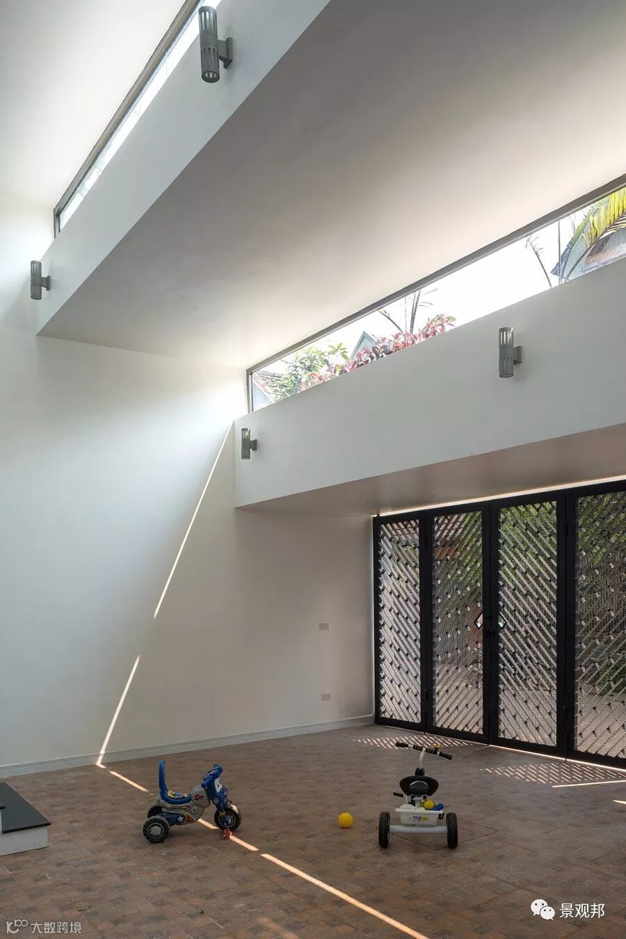 “梯田”高差出开了长条形采光窗户,透过玻璃可看到屋顶的种植、天空;光影照进来,室内外无缝与自然对接。