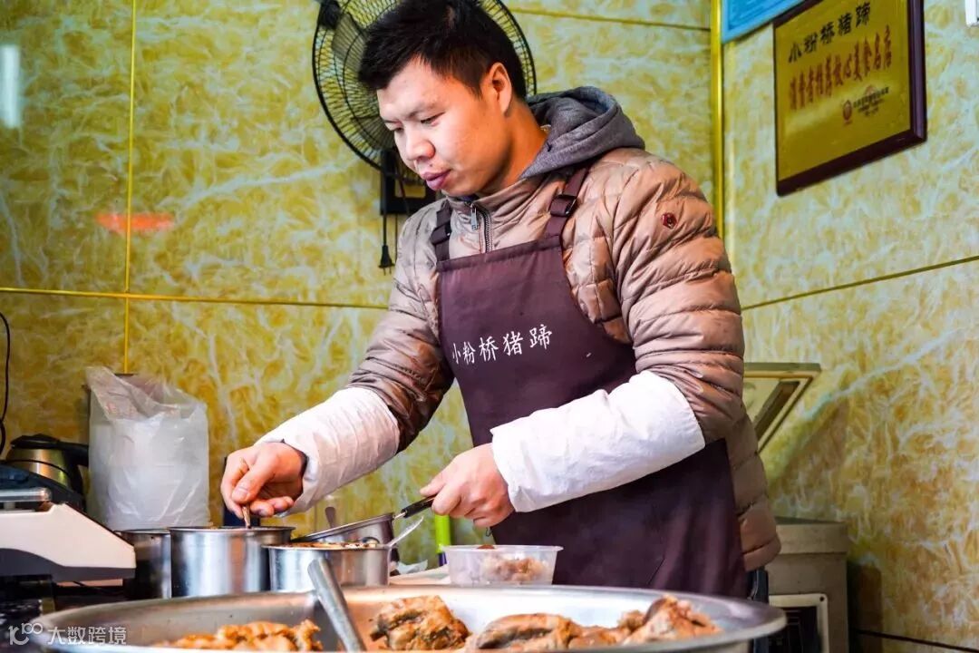 流动摆摊那两年,每天固定出摊两个小时,切猪蹄的手就没停下来过。唯一头疼的问题是路边摊不给摆。东躲西藏的日子也终究不是长久之计。