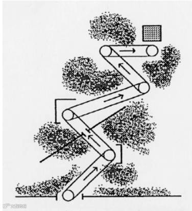 上图是日本园林里“隐趣”(miegakure/reveal and hide)的理论。与苏州园林里“径”这个概念相对应