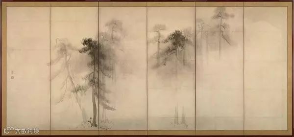几乎是同一时间的日本,同样是选择’松‘作为题材,长谷川等伯 画出的日本国宝《松林图》是这样的