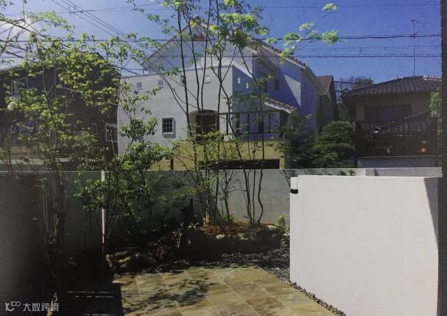 另外,最为惹眼的白色墙壁尽量避免了笔直的线条,把庭院围成了一个曲面,使之形成不对称美。