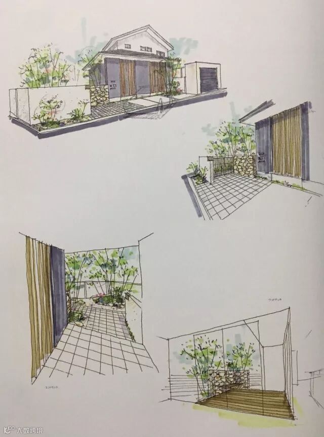 除此之外,多种铺装材料也可以让庭院中的视觉元素丰富起来,如庭院中十分显眼的大面积砂砾地面,这种造园手法使得人工与自然有效地达到平衡。