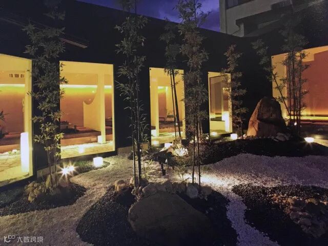 夜幕降临。前庭精细设置的灯光照明,赋予整个庭院朦胧梦幻之美,在配合室内昏黄的灯火,使人感到尤为放松和舒畅。