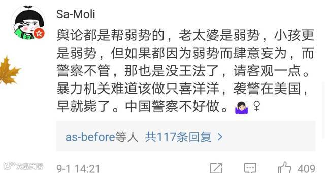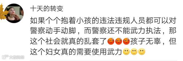 警察的行为确实不合适,调查结果可能违规违纪,但妇女企图抱着年幼的孩子当挡箭牌,暴力阻挠警察执法就又对了?坚决支持有关部门对民警的行为依法依规进行调查处理,但对违法女性的行为希望有关部门也依法处罚,不要因为舆论,纵容违法行为。