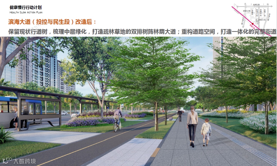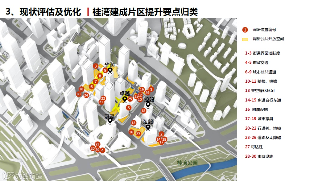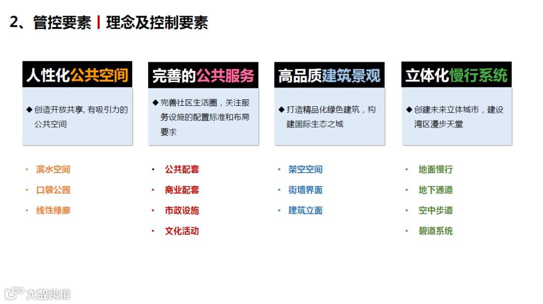 该项目在“宜居城市”(Livable City)的概念上迭代地提出了“宜人城市”(Loveable City)的城市建设新理念;创新性地提出了具有地域适应性的遮荫率、绿容率、骑楼挑檐、活跃功能占比、首层架空比例等规划管控指标;用CFD环境数值模拟等新技术,形成城市空间物理环境质量及城市空间使用者控制双重管控手段;从人性化公共空间、完善的公共服务、高品质建筑景观、立体化慢行系统四大管控要素出发进行评估分析和建成区优化;通过“5+1+1”(即5项工作计划、1个项目库、一个设计指引)策略确保研究成果的高效转化利用。