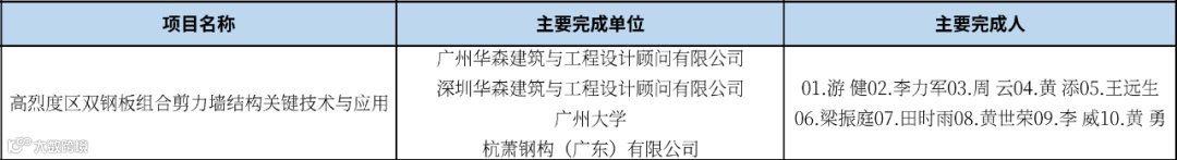 《高烈度区双钢板组合剪力墙结构关键技术与应用》由广州华森建筑与工程设计顾问有限公司、深圳华森建筑与工程设计顾问有限公司、广州大学、杭萧钢构(广东)有限公司联合打造,已获得5项专利授权,期刊发表论文5篇。