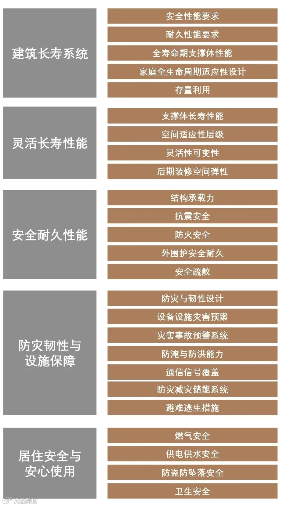 建筑长寿化:从安全性能、耐久性能、全寿命期支撑体性能等维度出发,提出了灵活长寿性能、安全耐久性能、防灾韧性与设施保障等要求。这些要求旨在延长建筑的使用寿命,降低维护成本,提升住房的资产价值。
