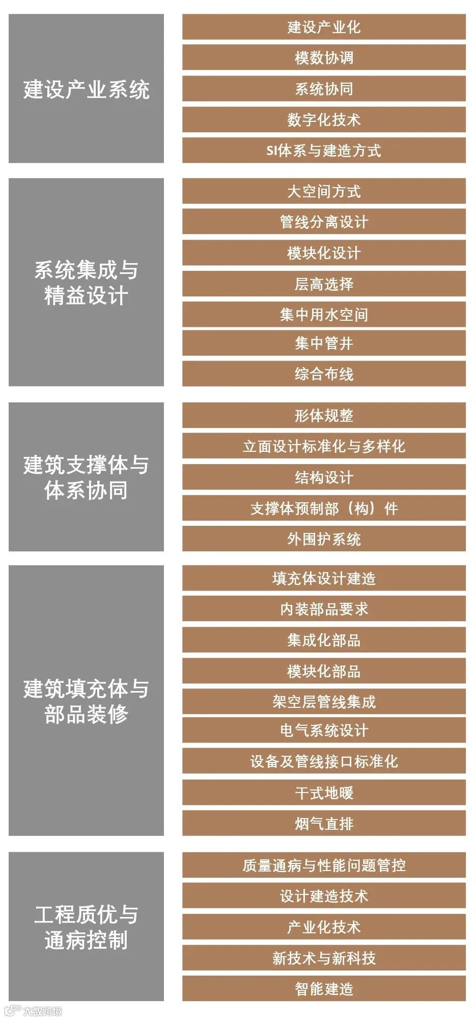 以高质量可持续发展的住房建设新理念、新方法、新供给为导向的住房建设模式,应精准把握 “中央要求、人民需求、行业追求”,运用系统观念统筹科技支撑作用,加强前瞻性思考、全局性谋划、战略性布局与整体性推进。抓住新一轮产业变革的契机,以设计创新引领与标准科技创新赋能为中心,全面提升发展新理念的新时代好房子标准水平,发挥高质量标准对经济社会发展的引领性作用,以高标准战略促进高质量发展,推动传统住宅产业向现代化住宅产业转型升级。