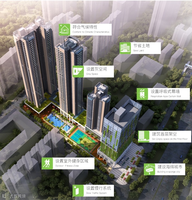 四个立面绿色上楼,第五第六立面同样绿色上楼