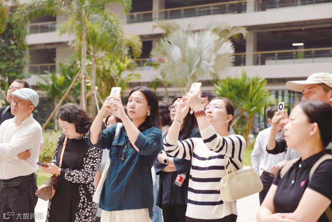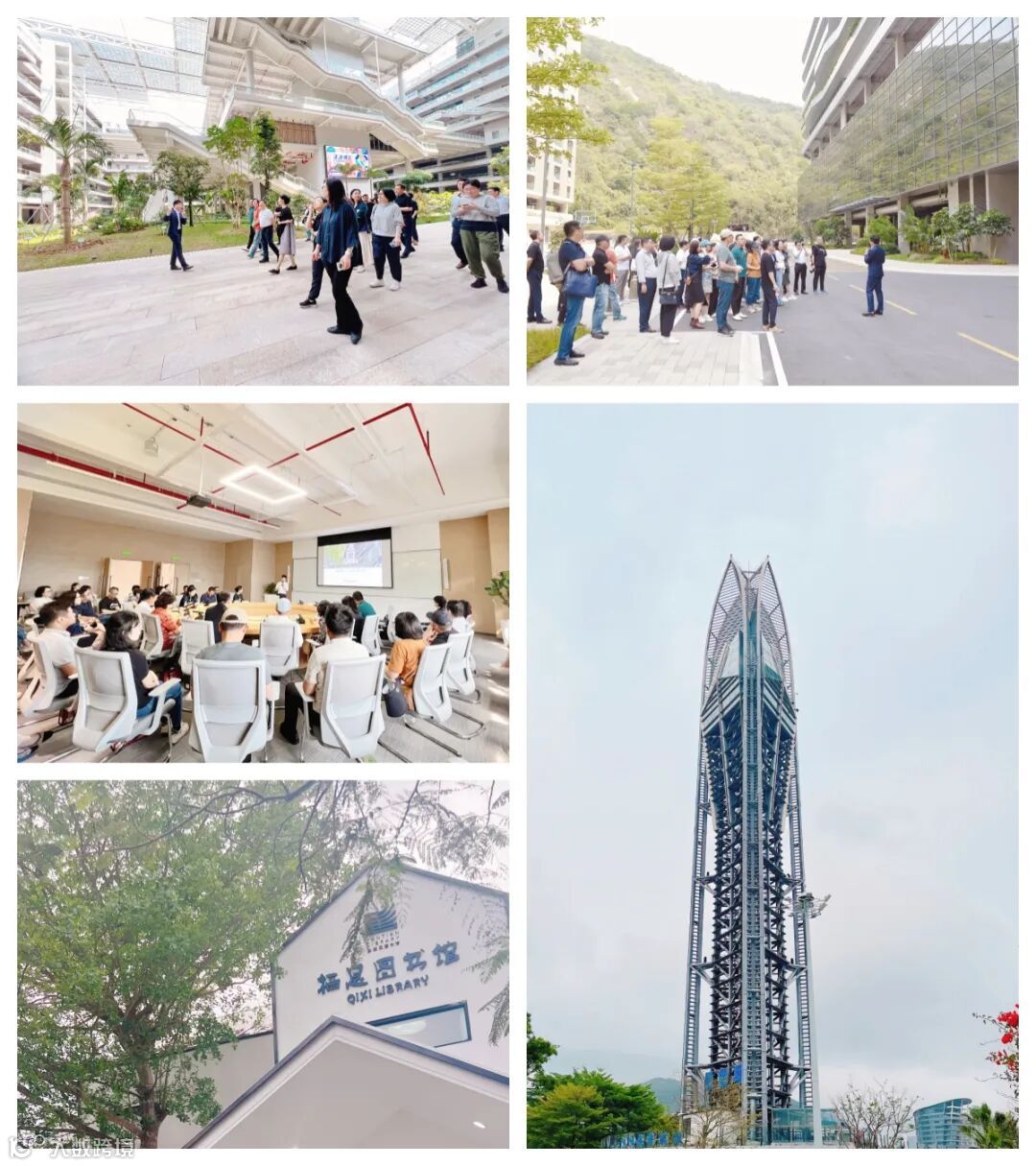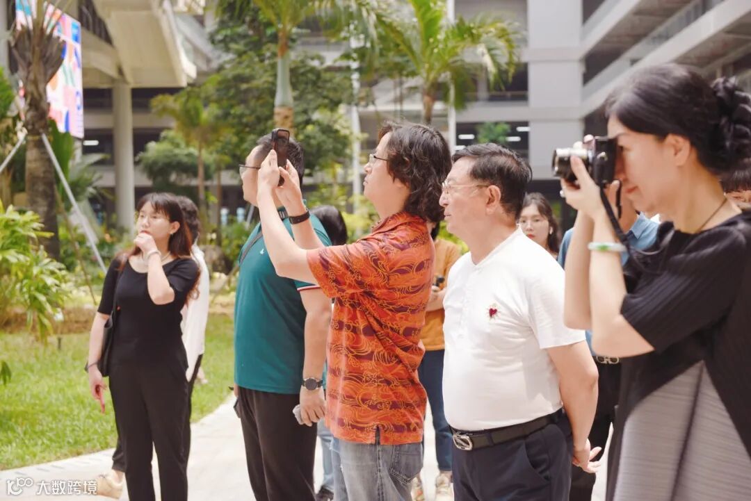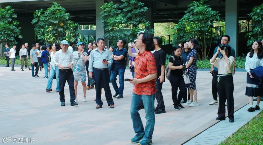 大家在走访参观的过程中,纷纷拿出相机、手机,通过镜头记录华大时空中心项目的绿色特性和匠心独运的设计元素,并就项目的设计理念和构造节点、建造方式,进行了深入探讨。