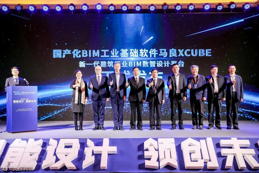 在本次智能设计分论坛中,中国建设科技集团有限公司党委书记、董事长文兵,中设数字技术股份有限公司总经理于洁等9位领导作为代表,共同上台完成了《国产自主知识产权BIM基础软件马良XCUBE》的重磅发布,通过新颖而震撼的发布仪式,宣告这款软件的正式亮相。