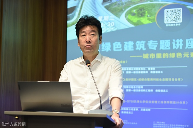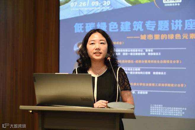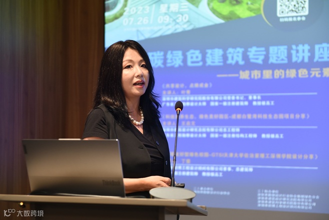第二位主讲人是欧博设计丁荣总建筑师,她作了题为《环境友好型绿色校园~GTSI天津大学佐治亚理工深圳学院设计》的分享。该项目设计过程运用了可持续的场地策略、规划策略、技术策略、文化策略4个方面策略,旨在打造一个近零碳校园,并通过三维动画展示设计效果,为大家呈现出一个精彩的创造性、创新性和环境友好型建筑案例。