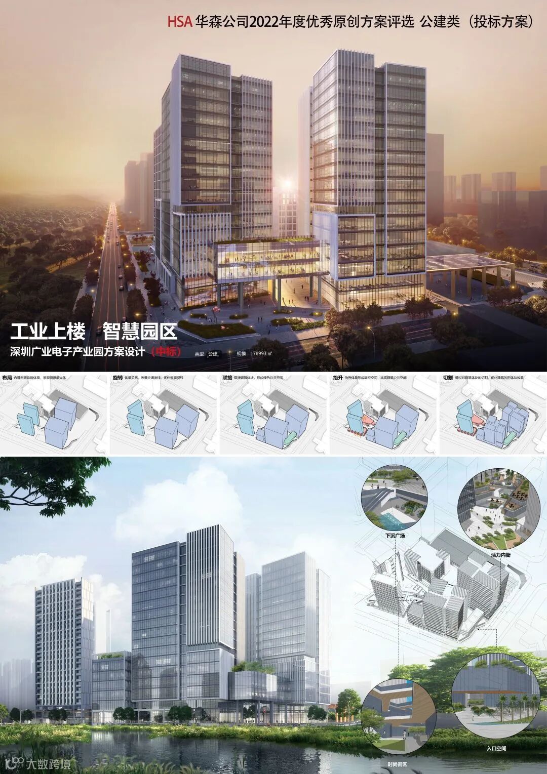 方案设计充分利用光伏、装配式、绿色等综合手段,赋予建筑全新的形象及生命力。此外方案在空间形态设计及企业形象的表现也颇具特色。