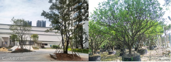 施工过程中仔细研究乔木最佳观赏视角,结合实际树形展示效果进行现场指导定位;出图前对各专业条件进行叠图交圈优化,最大限度使铺装模数与场地内的管道井盖对应,进行美化处理、呈现最佳效果。