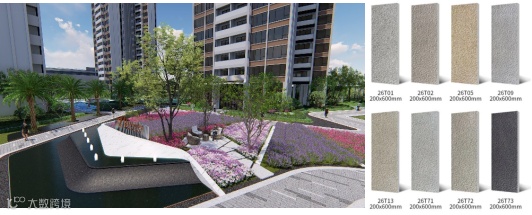 除了土建设计外景观设计细节把控在整个设计过程中也尤为重要。优秀的景观设计方案需要业主、设计方、施工方共同协作,展现最佳的效果。该项目从方案设计开始,设计师对整体材料色系、形状、质感、肌理、进行系统的设计。施工前严格把关材料品质、样板先行;雕塑小品制定前先打小样确认,持续优化比例;对植物乔木、灌木选购进行逐一甄选。