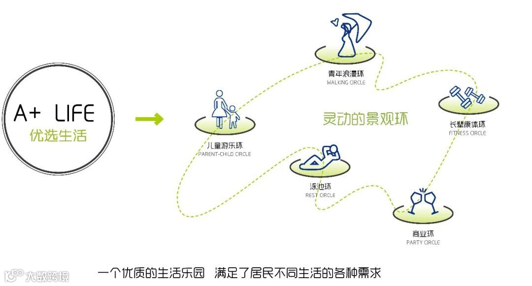 景观设计上致力于打造现代简洁,精致纯粹的生活社区。在设计上提出了一个家庭环的概念,通过灵动的景观环道串联空间,通过层层递进的视觉通廊传递出小中见大的精致艺趣。