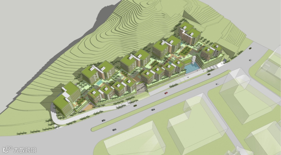 3.竖向设计结合地形,通过建筑形成有机的高低起伏的天际线效果;