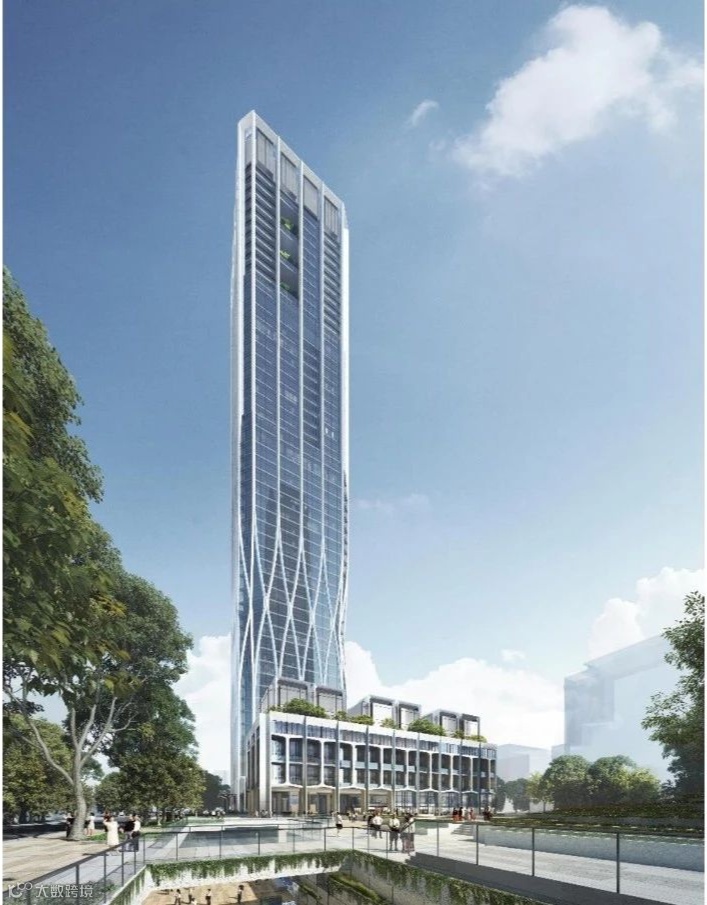 在东侧靠近城市绿地位置南北向布置高层板式综合楼,两栋楼之间形成南北向首层慢行空间,在东侧2栋首层南侧区域设置公共架空空间,引入来自东侧城市主要道路以及公共绿地的人流;向西在1栋超高层裙楼中部打开一层连通通道,结合城市支路形成开敞、顺畅的地面慢行空间。