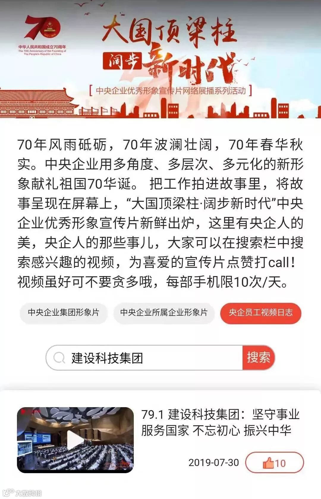 2. 注册成功后进入投票页面后,在搜索框中分别输入“建设科技集团”。点赞投票,每人每天可点赞10次。