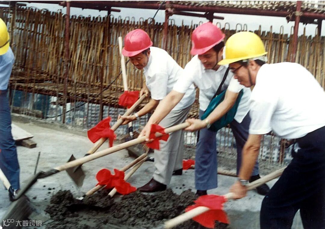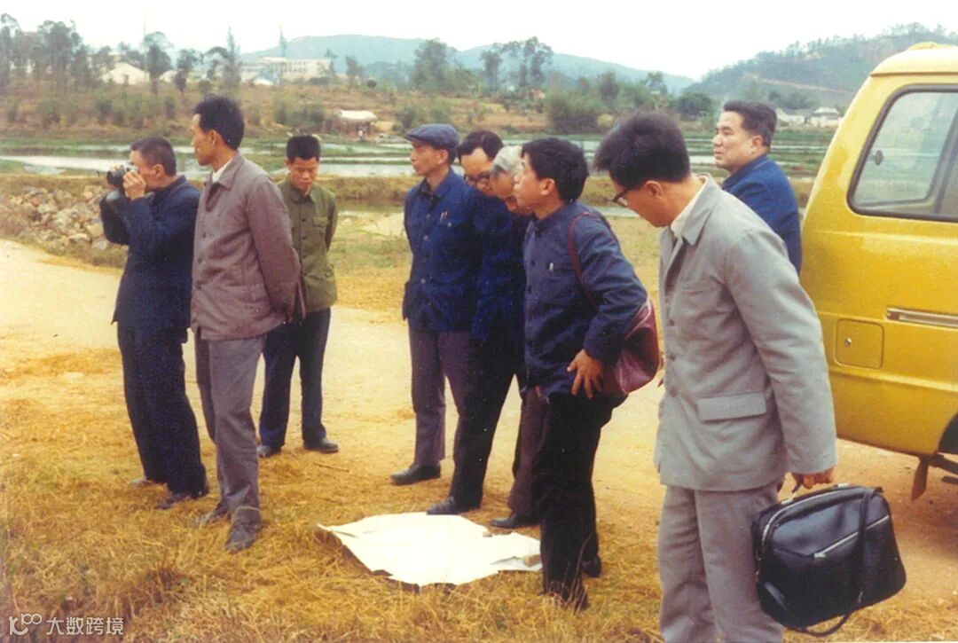 戴念慈、龚德顺、黄建才、吕克胜、程永年等勘测深圳联城大厦现场。