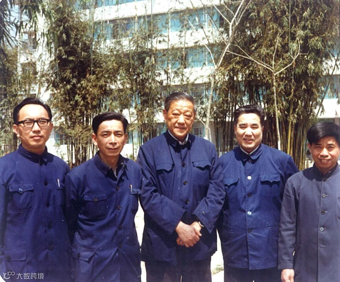 华森公司第一届成员等,左起:张祥宣、杜焕文、曾坚、杜希斌(建设部驻华森党委领导)、卜国琰、陈世民。