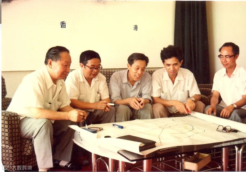 于深圳市规划局。左起:任震英、周干峙、袁镜身,其他二人为规划局专家。