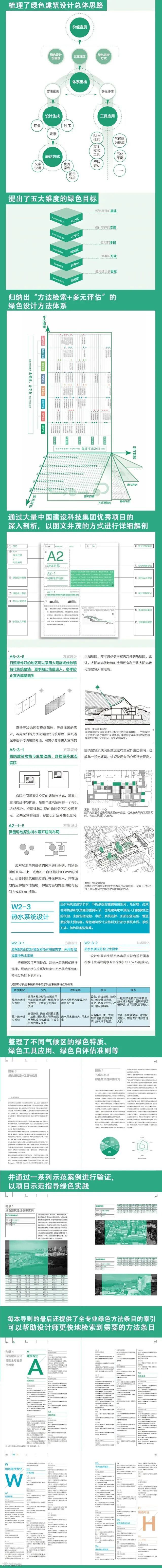 这本书是个导则,是要引导建筑师以绿色设计的理念和方法做设计的。从规划布局到单体建筑,从造型到界面处理,从空间节能到技术节能,从设计到实施和运维,每个步骤,每个环节都指明路径,给出方向,讲明道理,提供工具,还有参考案例和学理知识可以学习和借鉴。