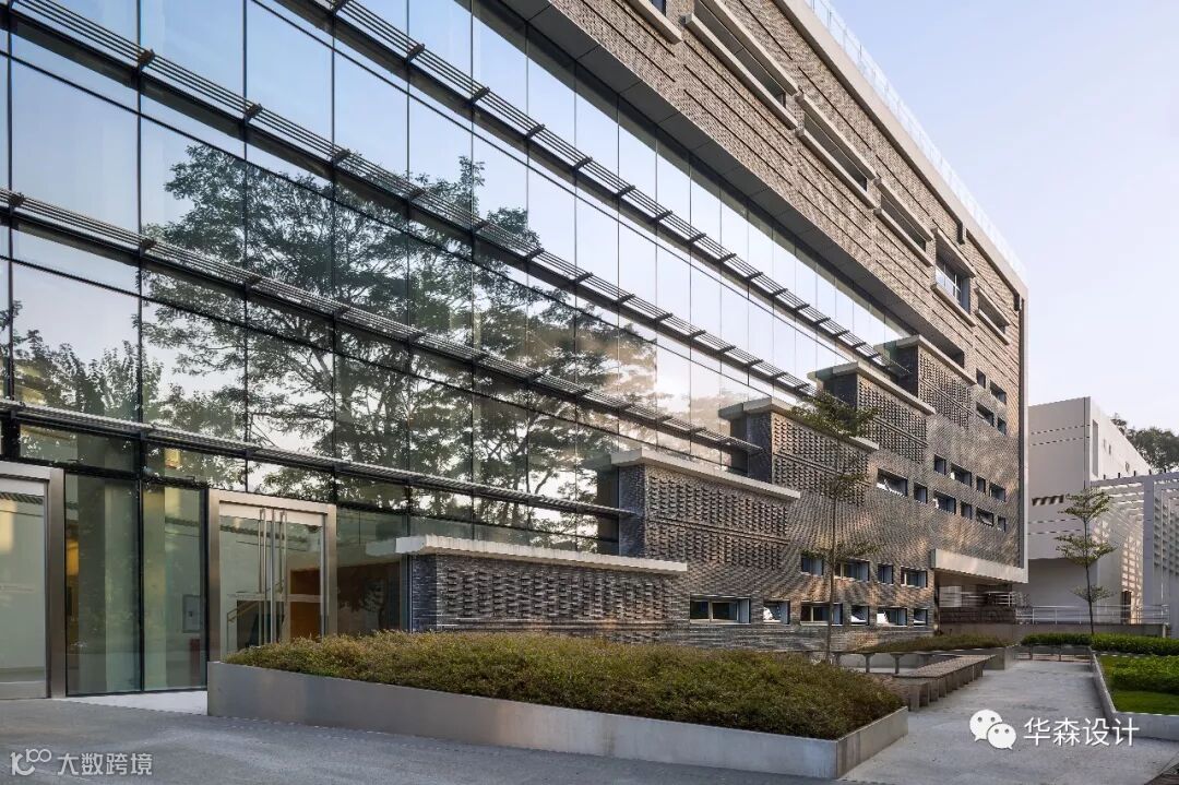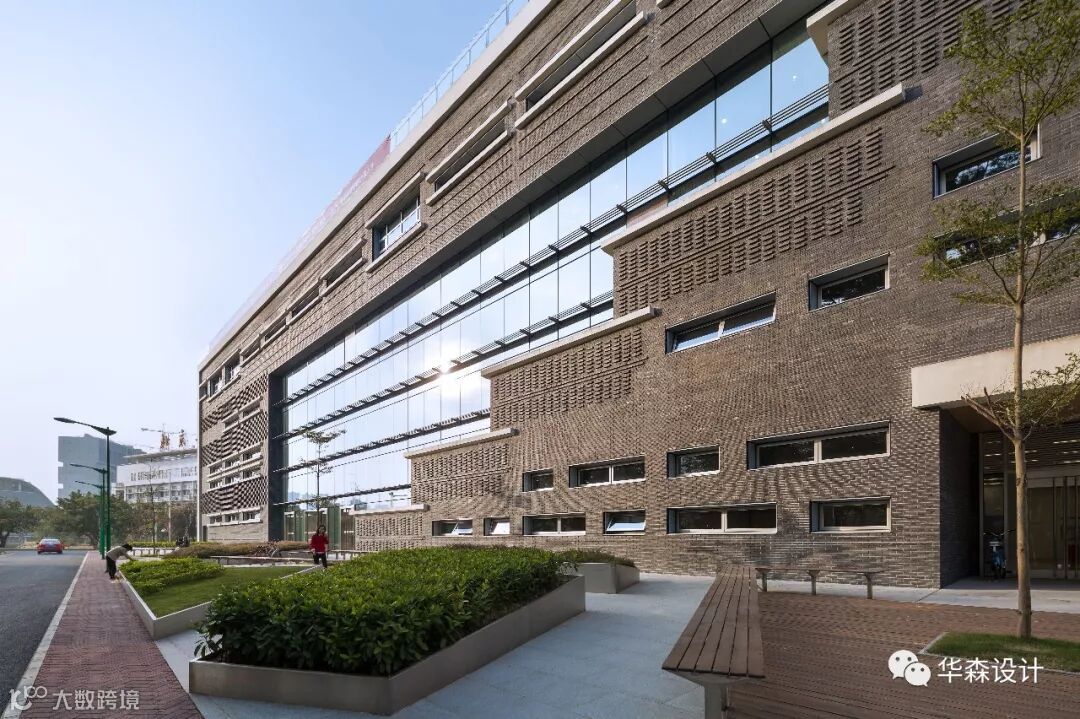 北列的外墙为一系列垂直支柱构成的拱廊,使项目面向校园的一侧呈现出庄重的外观。南列的围护结构以水平为主,起到遮阳的作用,从而在深圳炎热潮湿的气候下仍能保留一定的透明度。