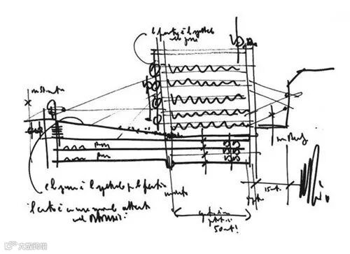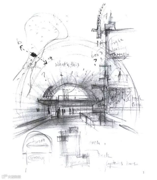 把它用到建筑师身上,其最合适的描述对象可能就是手绘的草图了:因为“笔”是“手”的自然延伸,以电光石火般的速度映射“脑”中的每一个转瞬即逝的念头,所以手绘草图能记载的建筑故事,远比其他设计媒体要多得多。