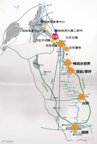 位于桂林市东南,距离桂林市中心(三里店)约8公里,距离高铁南站约15KM、机场40KM、阳朔60KM。项目具有得天独厚的区位优势,地处漓江风景名胜区上游,在桂林东线旅游路线的起点位置。