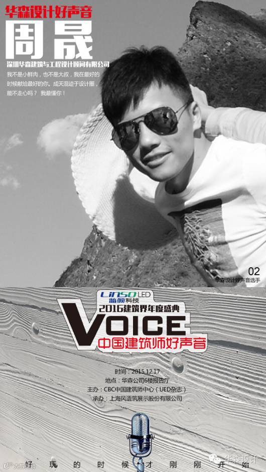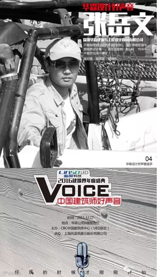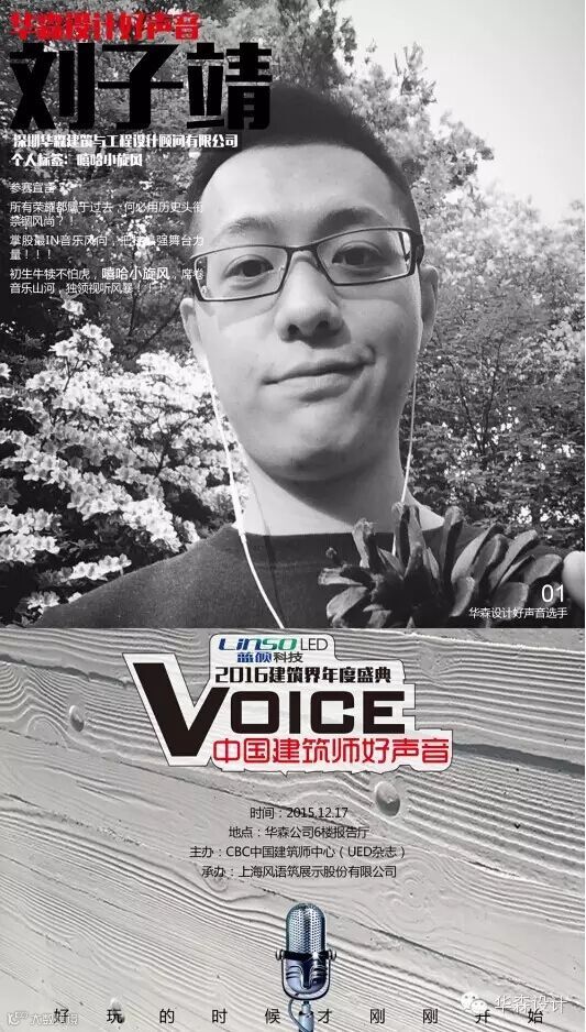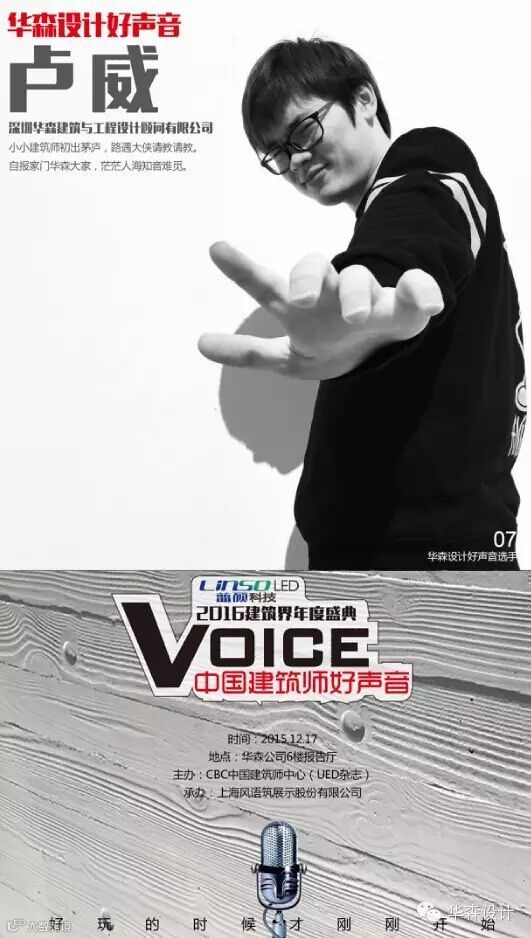 为更好地迎战2016年1月CBC(UED杂志社)举办“中国建筑师好声音”歌唱比赛,华森公司将于2015年12月17日18:00,在六楼报告厅拉开海选序幕!